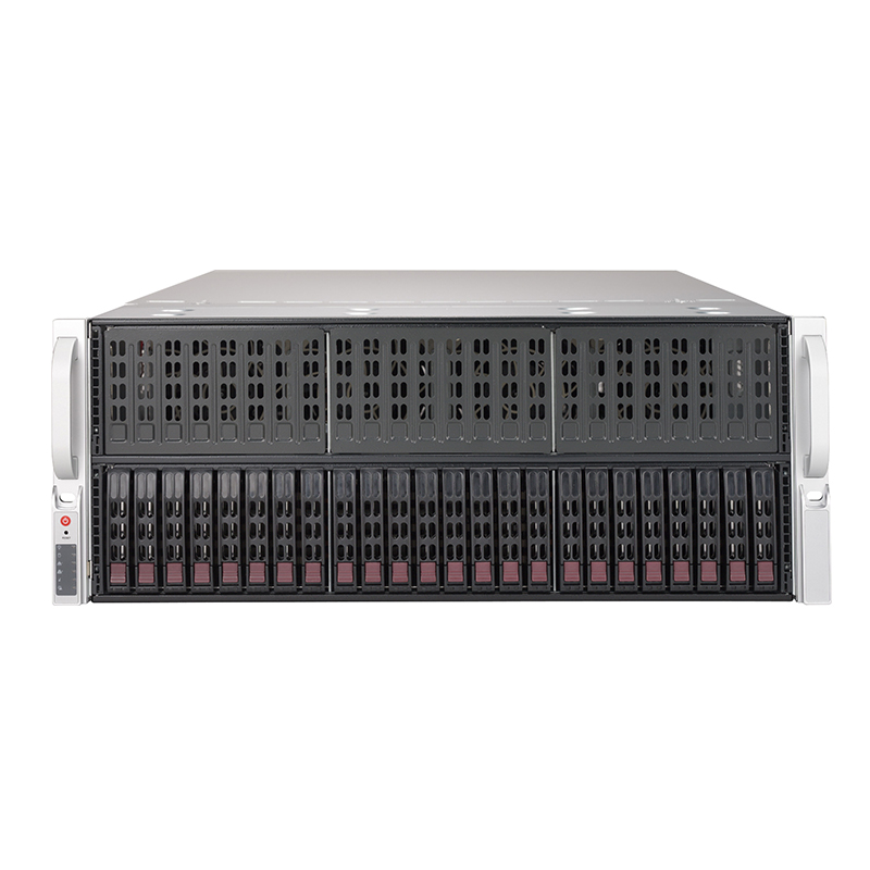 支持1/2颗英特尔® 至强® 可扩展系列处理器/C622芯片组/24* DDR4内存插槽/24* 2.5英寸热插拔盘位(可选 4* U.2 NVMe SSD)/1* 内置 M.2 PCI-E SSD盘位/2* 万兆网络电口/1* 千兆网络远程管理接口/1* VGA接口/8* PCI-E 3.0 x16双宽插槽/3* PCI-E 3.0插槽/1* COM接口(选配)/2000W 2+2 冗余电源